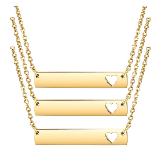 Laser Engravable Pendant Necklace Stainless steel Hollow CUT Heart Bar Pendant necklaces for Women